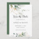 Elegante Salve os convites de casamento de data apresentando uma natureza, ouro e água verde folhas de design, e uma folha, folhagem, celebração botânica de modelo de vida que é fácil de personalizar.