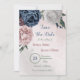 Bela botânica, salva o cartão de data com flores rosas, brancas e azuis marinhos com folhas verdes. PARA MAIS PRODUTO CORRESPONDENTE, clique na coleção acima ou entre em contato comigo.