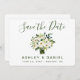 Buquê Verde Floral e Branco Moderno de Aquarela Salve a Placa de Noivado de Data