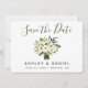 Buquê Verde Floral e Branco Moderno de Aquarela Salve a Placa de Noivado de Data