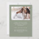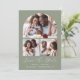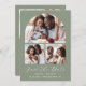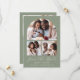 Este simples e minimalista Cartão Salvar a Data apresenta um arco de colagem de 3 fotos acima das palavras "Salvar a Data" em um elegante roteiro branco, seguido pelos nomes do casal, data do casamento e cidade em sans serif em um fundo verde sábio. Adicione uma quarta foto horizontal e uma mensagem mais detalhada no verso.