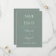 Belo sábio verde "Salve a Data" que é perfeito como prelúdio para o seu convite formal para todos os seus convidados. Feito com lindas fontes em branco simples e elegante. Perfeito para sua ocasião especial.