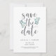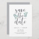 Um belo casamento verde e cinza salva as cinzas que aparecem nos cartões de data, destacadas por folhagem azul-esverdeada, folhas e bagas brancas. Personalize com seus nomes, data do casamento e local, e qualquer informação adicional, como seu site de casamento. Uma escolha moderna em um esquema natural de cores para boho, floresta ou casamentos com temas naturais em qualquer estação.