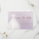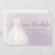 Os cartões salve a data de chá de panela elegantes apresentam um vestido de casamento branco de cor aquosa com brilho brilhante faux rosa gold, salvando o script de data em fundo roxo suave.