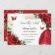 Personalize este bonito aniversário vermelho Quinceañera / Sweet 16, salve a data fácil e rapidamente. Basta clicar no botão personalizar para editar os textos, alterar as fontes e as cores das fontes. Apresentando uma garota vestida com um lindo vestido de bola vermelha, rosas vermelhas vibrantes, borboletas e elementos de ouro. Itens correspondentes disponíveis no repositório. c) Paperie fina somerset