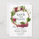 Uvas a Aquarelas Elegantes Modernas e Vinhas Curva de Madeira Salva de madeira O Cartão de Anúncio de Casamento inclui rosas a jato, rosas cor-de-rosa, rosas vermelhas e verde botânico.