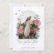 Peça a seu convidado que marque seus calendários para seu encontro muito importante com nossa bela vintage Alice na foto de casamento do templo Wonderland, salve a data. Perfeito para um casamento com a Alice no País das Maravilhas. Restauramos meticulosamente a icônica Alice no País das Maravilhas, a ilustração de coelho branco e Alice através de esboços manuais e trazemo-la à vida com belos toques de aquarela. Apresenta a nossa aquarela desenhada à mão e o estilo de esboço, rosa, arranjo de fotograma para que você adicione a sua própria dentro de imagem à forma de fotografia do arco. O lado inverso apresenta nossa chave original de coração de vintage desenhada à mão com nossos lindos florais. Os emparelhamentos de texto elegantes e vintage aprimoram esse tema mágico, caprichoso e icônico da vintage Alice no País das Maravilhas.