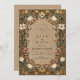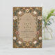 Celebre seu amor com elegância eterno. Este design de casamento inspirado na safra apresenta delicado marfim e flores de pincel entrelaçadas com videiras ouros e detalhes botânicos quentes. O intrincado quadro e fundo terrestre criam um olhar romântico, inspirado na natureza — perfeito para casamentos outono, jardins ou rusticidades. Personalize facilmente com seus próprios nomes, data e detalhes da cerimônia.