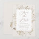 Floral elegante, salvar a data que apresenta um delicado quadro floral de flores aquáticas e folhagem em tons neutros a quente de branco, bege, marfim, ouro e marrom. "Salvar a data" é exibido em um roteiro de caligrafia moderno com seus nomes e detalhes de casamento mostrados abaixo. Os inspirados na vintage guardam as coordenadas da data com a nossa coleção de casamento Floral Elegante Vintage.