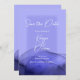 Lavanda violeta moderna, minimalista e azul Salve a data. Esta design é baseada no meu trabalho artístico original. Um design elegante e simples com gráficos de aquarela pintados à mão lhe dará um bom humor. Este cartão é uma forma excelente de espalhar suas férias.