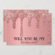 Você será minha dama de Bridesmaid? Chá de panela. Rosa cor-de-rosa, gotas de brilho, brilho, capricho, elegante, moderno, roteiro, Casamento salvar os convites de data. Por favor, personalize-o com os seus detalhes.