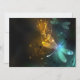 Voo de libélula brilhante, verde, desenhada artisticamente, com asas verdes e amarelas transparentes sobre fundo noturno brilhante com plantas pântanas e vagalumes. Dragonfly brilhante.