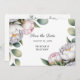 A delicate watercolor illustration of white and pink peonies with eucalyptus leaves arranged in a corner design. The flowers feature detailed petals with subtle pink undertones and golden stamens in their centers. The eucalyptus leaves are rendered in various shades of sage green, with elongated oval shapes and natural veining. The leaves are arranged in graceful curved branches that extend from the top right and bottom left corners of the composition. The flowers are painted with soft, translucent watercolor techniques, creating gentle gradients and subtle shadows. The illustration is set against a pure white background, creating a clean, elegant aesthetic. The arrangement creates a balanced, symmetrical design with the flowers and foliage distributed evenly across the corners of the frame.