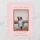 Um casamento de moda salve o anúncio de data com sua foto favorita em um quadro de vieiras em terracotta sobre um fundo cor-de-rosa e texto de terracota. Adicione o seu site de casamento e o Código QR ao contrário.