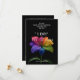 "Hearts in Bloom" — a joyful save-the-date card from the Technicolor Love collection, designed to announce your upcoming celebration with radiant pride and heartfelt warmth. At its center shines the signature rainblo lily, a multicolored marvel drenched in dew and glowing against a dramatic black backdrop. Each petal bursts with color—red, orange, yellow, green, blue, and violet—symbolizing the vibrant spectrum of love and the beauty of your union.