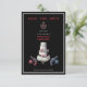 The deep charcoal background makes the crimson typography and elegant chandelier pop, while the "Formal Reception to Follow" script adds a touch of classic sophistication to the "Guns N' Roses" noir theme. Whether you’re planning a moody winter wedding, a Gothic-glam celebration, or a high-fashion black-tie event, this card promises your guests an unforgettable night.