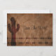 Este anúncio de salvamento ocidental apresenta um tema ocidental completo com cactus e barbed wire cerca. Perfeito para um casamento ocidental ou country!