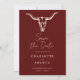 Western Save the Date - apresentando um crânio de vaca boêmico ocidental rústico num fundo de terracota laranja. Salvar a data é um design simples com script e inscrições modernas para um design minimalista. Todos os elementos podem ser editados.