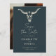 Western Save the Date - apresentando um crânio de vaca boêmico ocidental rústico num fundo de terracota laranja. Salvar a data é um design simples com script e inscrições modernas para um design minimalista. Todos os elementos podem ser editados.