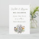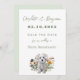 Casamento salve a data com o design de cães terrier da West Highland. Flores selvagens e imagem de filhote na parte inferior com cinco linhas de texto verde de jardim para personalizar. O reverso é verde-claro e sólido. Perfeito para casais que planejam incluir seu bebê pelado em um casamento de primavera ou verão. Fazer download de opções, upgrades de papel e seleções de tamanho.