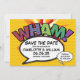 Personalize com seus nomes e detalhes para anunciar a data do seu evento especial. Tema moderno de arte pop de história em quadrinhos, design retrô divertido, perfeito para casamentos, chá de panela, chá de bebê, batizados, festas de noivado, celebrações de aniversário, formaturas, festa de aniversário e outros eventos especiais ao longo do ano! Um design legal, moderno e divertido que dá um up no seu dia. Criado por ComicBookPop© em www.zazzle.com/comicbookpop*