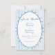 This whimsical wedding save the date card features a soft blue, playful oval frame against a classic blue and white striped background. Add your favorite photo to the back frame. Perfect for a wedding with a preppy or coastal aesthetic, this charming design provides a sweet, hand-painted look for your special celebration. Created by Simply Farmhouse Press.