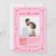 These elegant and whimsical wedding save the date cards feature a whimsical, wavy frame with hearts, and a hand-drawn cupid cherub with bow and arrow. Romantic, vintage script and classic serif text help create a stylish and retro layout. The back of the card features your favorite personal photo, plus a scannable QR code so guests can get more information or RSVP. This trendy, vibrant pink and red invitation is a colorful way to let friends and family know you are getting married.