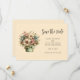Save the date card with a cute image. Blue. pink and cream colored flowers with green leaves. Set inside a green flower pot with a green plaid cloth hanging over the side.