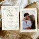 Anuncie seu dia especial com este caprichoso e peculiar Salve a data com um charmoso arco verde desenhado à mão. Perfeito para casais que procuram um convite de casamento único e divertido, este design adiciona um toque pessoal ao seu anúncio de casamento. Ideal para aqueles que querem algo divertido e criativo, esta "Salve a Data" deixará uma impressão duradoura nos seus convidados.
