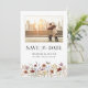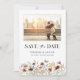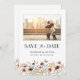 Este na moda e elegante White Photo Boho Save The Date apresenta lindas flores de aquarela pintadas manualmente organizadas como um quadro adorável perfeito para primavera, verão ou casamentos outono. Encontre itens correspondentes na Coleção de Casamentos de Flores Selvagens de Branca.