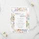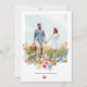 The front features a stunning hand-painted watercolor wildflower border in vibrant shades of blush, coral, lavender, blue, and green — perfectly framing your names and wedding details in elegant serif and script fonts. The back showcases your engagement photo, adding a heartfelt personal touch your guests will love and cherish.