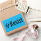 #Resistir, texto negro em negrito nos adesivos azu