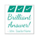Este design de carimbo inspiracional mostra a inspiradora mensagem "Resposta brilhante!" e o nome de um professor, educador ou professor personalizado. Também apresenta uma marca de verificação decorativa. Ele poderia ser usado por um professor de escola, educador, instrutor ou orientador ao formando trabalho estudantil, para indicar que um aluno fez um trabalho excepcional.