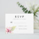 Um cartão de resposta/RSVP de casamento moderno, apresentando uma flor e uma folha de magnólia em aquarela verde e rosa. O verso é rosa sólido. Itens correspondentes neste design estão disponíveis.
