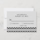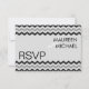 Placas RSVP de stripes de dois lados. Cinzas e a resposta do casamento do padrão Black zig inserem-se com a tipografia moderna minimalista. Personalize o texto, digitação, cor, estilo, cor de fundo ou mova as faixas de ziguezague dos dentes-de-serra para criar mais espaço, se necessário.
