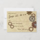 Cartão de resposta de casamento com design inspirado em steampunk de engrenagens industriais rústicas em tons de bronze, cobre e aço.