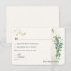 Um design único para o seu casamento. O cartão de RSVP apresenta uma ilustração de aquarela com eucalipto, folhagens com toques elegantes de dourado falso. Personalize este modelo com todas as suas informações. Se precisar de ajuda ou cores adicionais, por favor entre em contato comigo (Maria) clicando no botão abaixo.