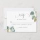 Este elegante cartão RSVP de casamento apresenta um charme botânico eterno com verde-aquarela macia e acentos de folhagem verde graciosa. Concebido como um cartão de resposta clássico, inclui espaço para os convidados aceitarem alegremente ou recusarem-se lamentavelmente, juntamente com uma seção de preenchimento de convidado simples para facilitar e clarificar. Perfeito para casais que buscam um toque simples, mas elegante, em sua papelaria de casamento, esta carta complementa lindamente qualquer tema inspirado na natureza.