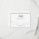 Esta elegante e moderna carta RSVP de casamento apresenta uma elegante tipografia negra num fundo branco, com uma borda preta.
