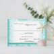 Cartão de resposta de casamento do tema Praia em Aqua Marine Teal acentuado com rendas, dólares de areia e peixe estrelado. Perfeito para um casamento de destino planejado ou apenas um tema divertido no oceano. Disponível em várias cores ou entre em contato comigo para obter opções adicionais. Todas as partes deste design são impressas. Não há renda real, estrelas-do-mar ou dólar de areia.