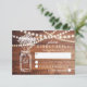 CARTÃO DE RESPOSTA DE CASAMENTO EM JARRO DE MASON RÚSTICO INTERIORANO | Fundo de madeira com cordão de luzes, jarro de mason contendo flores de respiração de bebê e a redação do seu casamento em branco. Encontre outros cartões de resposta de casamento em http://www.zazzle.com/special_stationery*