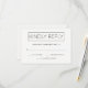 Este cartão RSVP de casamento estilo na moda, minimalista, apresenta bordas negras finas e texto preto moderno sobre fundo branco.
