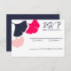 Adicione o cartão de resposta perfeito ao pacote de convites de casamento. Faça uma declaração com cores ousadas e um gráfico limpo e simples. Estas respostas apresentam ilustrações de folhas de ginkgo em azul-marinho, rosa claro e magenta cor-de-rosa vibrante.