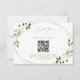 Cartão de Recepção de casamento Geométrico Greenery: Este cartão rsvp permitirá que os seus convidados digitalizem o seu website de casamento com o código QR para responderem online. Este design corresponde à nossa Coleção Geométrica de Verde, com uma estrutura moderna de folha de ouro falsa rodeada por buquês florais e verdes de cor d'água rústica.