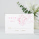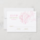 Um lindo cartão de resposta com uma única flor de peônia rosa com texto dourado em um fundo branco. O layout limpo inclui um prazo de resposta, linha de nome e caixas de aceitação ou arrependimento para facilitar as respostas dos convidados. Todo o texto é editável para combinar com o cronograma e conjunto do seu casamento.