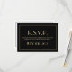 Garanta uma resposta oportuna para o seu grande dia com estes cartões de resposta de casamento fáceis de usar. A data da sua RSVP é destacada em negrito na frente. A presença e outras opções relevantes são claramente apresentadas no verso com espaço adequado para escrita. Cada cartão vem com seu próprio envelope. Estes cartões de RSVP de casamento correspondem aos convites de casamento formais elegantes e chiques Decadent Deco.