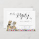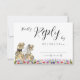Cartão de cerimônia de resposta RSVP de casamento com o dinossauro. Apresentando uma noiva e um noivo T-Rex em um vibrante prado pré-histórico de flor silvestre, esta carta traz uma sensação única e caprichosa para o seu dia especial. A tipografia moderna no estilo caligráfico é divertida e fácil de personalizar, fazer simples de combinar com o estilo do seu casamento. Projetada pela talentosa Catherine Sweetman, a aquarela arte apresenta uma encantadora mistura de flores de verão e amor inspirado em dino. Perfeito para sua recepção de casamento ou janto de ensaio, este cartão RSVP é parte de uma suíte de casamento completa que inclui tudo o que você precisa para fazer sua jornada de casamento tão memorável quanto sua história de amor.