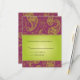 Desenhos paisley verdes sobreimpressos em um rico fundo roxo. O texto de casamento personalizado fica em um painel gradiente verde lima. Ótimo para um casamento com tema do sudeste asiático ou quando você quer fazer uma declaração calorosa e ousada. Disponível em cores alternativas com produtos correspondentes.