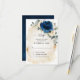 Cartão de resposta de convite de casamento azul marinho escuro com um buquê elegante de azul marinho, azul real, branco, dourado, champanhe marfim, rosa desmaiado, botões de ranúnculo e folhas de eucalipto verde-sage com moldura geométrica brilhante em aquarela. Por favor, entre em contato para qualquer ajuda na personalização ou se precisar de qualquer outro produto com este design.