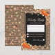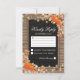 Cartões-postais de resposta de casamento de colheita de outono rústico com um fundo de madeira chique country, centro de quadro-negro preto, corda, abóboras de halloween, folhagem de outono, bolotas, uma dispersão de folhas de outono, luzes cintilantes e um modelo de rsvp personalizado.